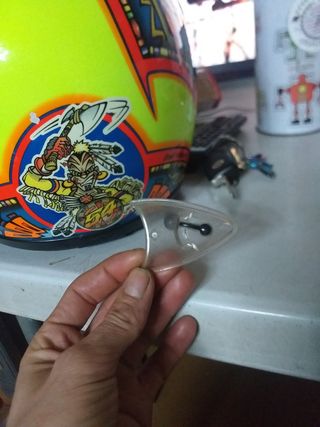 Casco de moto para niño con un diseño llamativo poco uso pequeña raja en la visera de la cual pongo foto - Color blanco con detalles en negro y rojo - Visera superior. - Cierre de seguridad. Marca TNT helmets