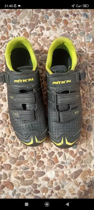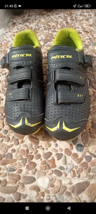 Zapatillas de ciclismo MTB talla 42en color negro con detalles amarillos. - Cierre de velcro. - Suela reforzada.