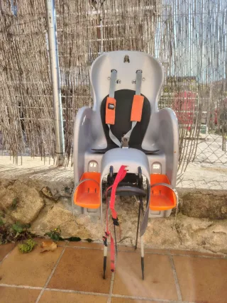 Silla para bicicleta infantil. - Asiento ergonómico. - Arnés de seguridad de 3 puntos. - Reposapiés ajustables. Está usada pero hace su función.