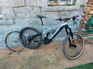 Bicicleta eléctrica Megamo en color plata y negro. - Cuadro de aluminio. -Bateria con 625 wh. 7500km - Ruedas DT Swiss con otra llanta más aparte. - Horquilla Fox 36 ,con 160mm y suspensión trasera Fox 160mm. -Precio algo negociable.