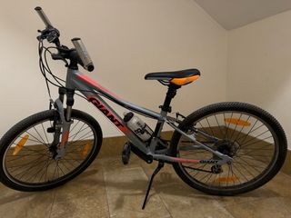Bicicleta de montaña en buen estado, lista para usar. - Ruedas de 24 pulgadas. - Cuadro de color rojo y amarillo. - Sillín negro.Se recoge en Moratalla,espectacular
