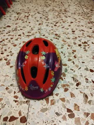 Casco de bicicleta infantil con diseño de Disney. - Personajes de Winnie the Pooh y amigos. - Colores rojo, morado y detalles florales. - Licencia oficial Disney.