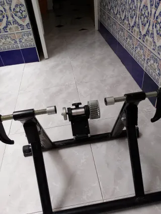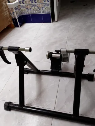 Rodillo para entrenamiento de ciclismo en interiores. - Estructura metálica resistente. - Compatible con bicicletas. - Diseño plegable para fácil almacenamiento. Se ha utilizado un par de veces, está nuevo.