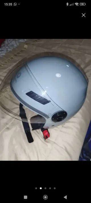 Casco de moto de estilo abierto, color gris y con visera transparente. - Diseño moderno. - Cierre de seguridad. - Interior cómodo.