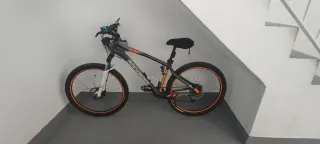 Bicicleta de montaña Scott Scale 930 en color negro y detalles naranjas. - Cuadro de carbono. - Horquilla de suspensión Fox. - Ruedas Maxxis con Tubeless - Manillar y puños naranjas. - Portabidón incluido. - Pedales mixtos. - Bloqueo de horquilla automático. - Frenos hidráhulicos MT-401. - Cambio Sram Eagle Sx 12V. - Talla M - Documentación original Tienda Scott. * Se vende por falta de uso, no acepto cambios. NO SE NEGOCIA* Puede verse y probar sin compromiso