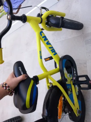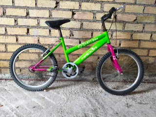Bicicleta de la marca WST en color amarillo neón y detalles en azul. Ideal para niños. - Tamaño de rueda: 20 pulgadas. - Muy poco uso, prácticamente nueva.