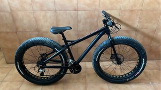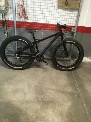 Bicicleta tipo Fat Bike en color negro. Sus grandes ruedas permiten transitar por diversos terrenos. - Cuadro de aluminio. - Ruedas Kenda Juggernaut Sport. - Frenos de disco.