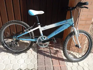 Bicicleta infantil de montaña JL-WENTI. - Color azul y blanco. - Ruedas de 20 pulgadas. - Frenos. - Cambio de marchas.