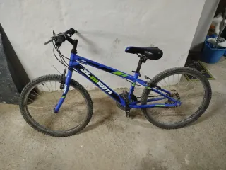 Bicicleta para niñ@s en talla 24, color azul. Se encuentra en buenas condiciones. - Ruedas de 24 pulgadas. - Diseño deportivo con detalles verdes. - Frenos delanteros y traseros.
