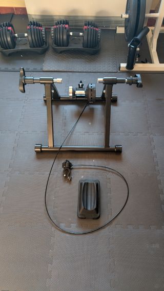 Rodillo de entrenamiento para bicicleta Btwin Inride 100 con tecnología magnética. Ideal para mantener la forma física en casa. - Compatible con bicicletas. - Tecnología magnética para resistencia.