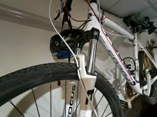 Portabidones para bicicleta, color negro. Es ligero y parece estar en buen estado. - Material: Plástico resistente. - Color: Negro. - Diseño: Para una botella. - Medidas: 10 cm largo Con el soporte y la pinza 14 cm Ancho 6 cm Fondo 8 cm