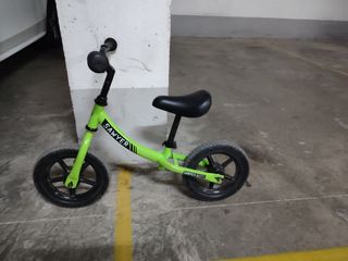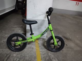 Bicicleta de equilibrio de color verde brillante, ideal para los más pequeños. - Marca: Sawyer Bikes. - Diseño de equilibrio para aprender. - Ruedas negras. - Usada pero en buen estado.