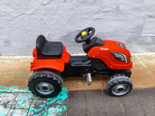 Tractor a pedales de la marca Smoby, modelo Farmer XL. Ideal para que los más pequeños disfruten al aire libre. Perfecto para niños hasta 6-7 años. - Color naranja y negro. - Volante con claxon. - Asiento ajustable.