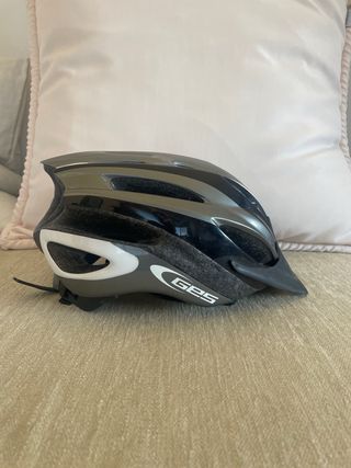 Casco de bicicleta de la marca Ges, con un diseño moderno en tonos negro y gris. - Diseño aerodinámico. - Múltiples ventilaciones para mayor comodidad. - Correas ajustables para un ajuste seguro.