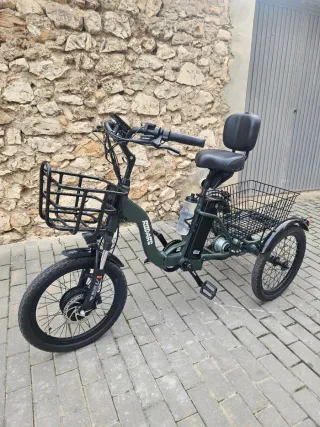 TRICICLO PARA ESTRENAR, TAN SOLO TIENE 60KM ( SE COMPRO PARA PERSONA CON MOVILIDAD REDUCIDA Y NO SE HACE A ELLA ) Precio nueva 2.925€ Muchos extras, preguntar sin compromiso. Voltaje: 48V Motor: 250W / 48V (45Nm) Bateria: 480Wh (48V/10Ah) Acelerador: Si Cambio: Shimano Nexus 8V Neumáticos: 20" x 2"4 Mixto Asiento: Con Respaldo Color: Verde Mate FABRICADA EN ESPAÑA