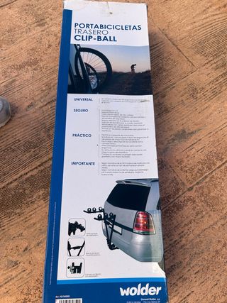 Portabicicletas trasero Wolder Clip-Ball para coche. Permite el transporte de hasta 3 bicicletas. - Homologación CE. - Fabricado en acero de alta calidad. - Soporta hasta 45 kg. - Sistema de fijación y sujeción seguro. - Se instala en 1 minuto. - Compacto, con brazos plegables.