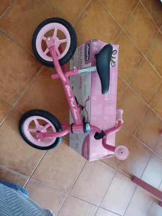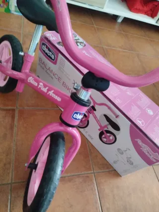 Bicicleta de equilibrio rosa de la marca Chicco, ideal para niños de 2 a 5 años. - Diseño tipo Montessori. - Color rosa. - Ruedas de goma. - Sillín ajustable.