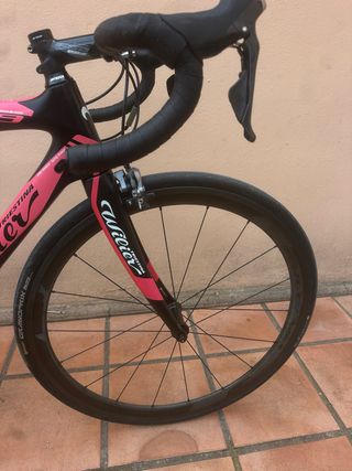 Bicicleta de carretera Kuota Kryon con un diseño deportivo y aerodinámico. - Cuadro de carbono.talla S - Ruedas de perfil. Visión T42 - Grupo electrónico di2 de 11v - Pedales look keo Blade - tiene otro juego de ruedas fulgrum perfil bajo como se ven en las fotos. También tiene 2 pares de tija una aero y otra con retroceso como se ve en las fotos. - sillín syncros bergarra. Tengo factura de tienda.