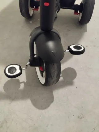 Triciclo infantil con capota. - Diseño moderno en color negro y gris. - Ruedas con detalles blancos. - Barra de seguridad. - Capota para el sol. Respaldo dos posiciones Triciclo plegable