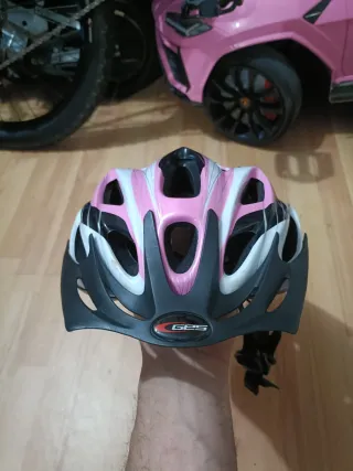 Casco de ciclismo Ges con un diseño llamativo en rosa y blanco. - Diseño ventilado. - Cierre ajustable. - Marca Ges. - Talla M