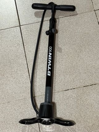 Bomba de aire Btwin 900 para bicicletas. - Pocos usos, funciona perfectamente, sin rasguño. - Su manómetro de 100 mm de diámetro te dará una precisión de lectura de 2 PSI o 0,2 bar. - Envío bien protegido ✅📦🚚