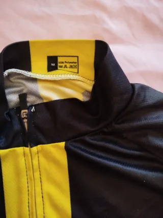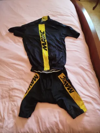 Conjunto de ropa de ciclismo de la marca Mavic. - Chaqueta negra con detalles amarillos. - Pantalón negro con detalles amarillos.