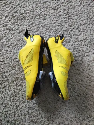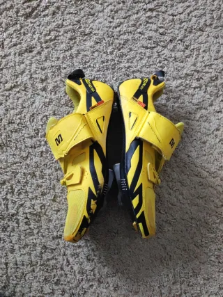 Zapatillas de triatlón Mavic en color amarillo vibrante. Diseñadas para ofrecer rendimiento y comodidad en competiciones. - Talla 42. - Cierre seguro. - Diseño aerodinámico. - Suela de carbono.