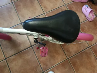 Bicicleta infantil Btwin Docte Girl 500, ideal para las primeras aventuras.Para embellecerla habria que cambiar los puños y pedales pero solo por hacerla bonita porque por lo demas funciona perfectamente - Color blanco y rosa. - Diseño con personajes y gatitos. - Ruedas de 16 pulgadas.
