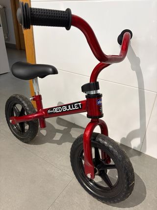 Bicicleta de equilibrio de color rojo, ideal para los más pequeños. Ideal de 2 a 5 años. Hasta 25kg - Marco de metal resistente. - Ruedas negras. - Asiento negro.