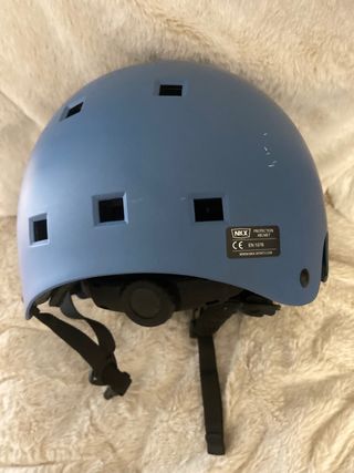 Casco NKX de color azul, diseñado para niñ@s. Es un accesorio de protección. - Diseño en forma de calota. - Múltiples orificios de ventilación.
