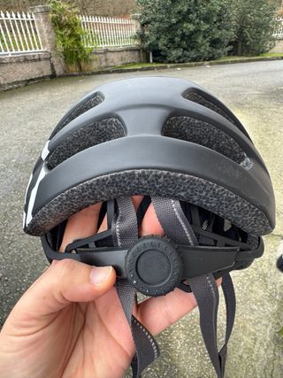 Casco de bicicleta en talla L. Diseñado para ofrecer protección y comodidad. - Interior acolchado. - Sistema de ajuste trasero. - Correas ajustables.