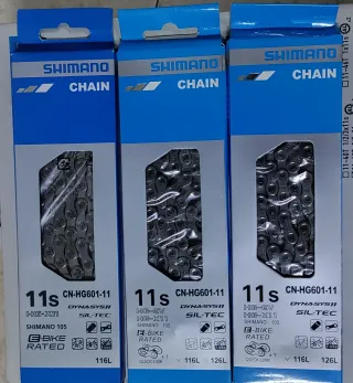 Cadena Shimano HG601-11 de 11 velocidades. Piñones SLX CSM7000 11-42 11V Cambio trasero SLX - Longitud de 116 eslabones. - Tecnología SIL-TEC. - Compatible con sistemas DYNA-SYSII. - Apta para E-BIKE.
