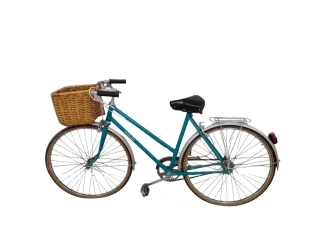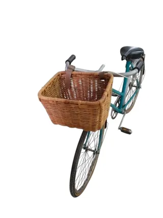 Bicicleta estilo vintage de la marca HONZE, con una práctica cesta delantera. - Color verde azulado. - Cesta de mimbre. - Sillín negro. - Guardabarros plateados. Las ruedas solo necesitan inflarse y tiene algo de óxido superficial, pero funciona bien y es perfecta para quien quiera una bici práctica y bonita sin gastar mucho. También es ideal para decoración. Talla aproximada: adulto. Entrega en mano.