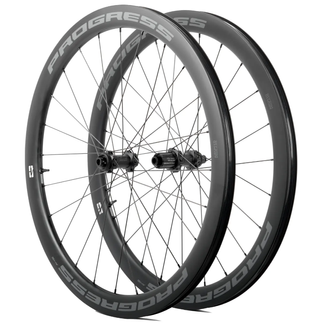 Juego de ruedas Progress Airspeed A45 para frenos de disco. - Perfil de 45mm. - Construcción en carbono. - Ejes pasantes.