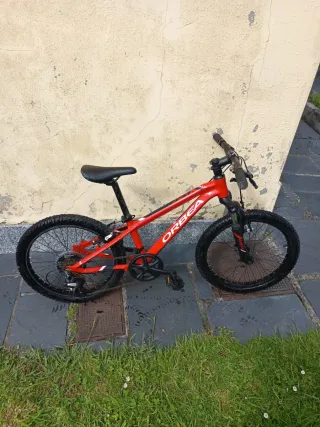 Bicicleta Orbea de color rojo. - Cuadro de aluminio. - Ruedas de 20 pulgadas. - Frenos de disco.