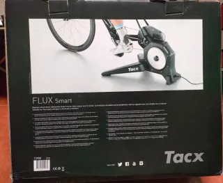 Rodillo de entrenamiento interactivo Tacx Flux Smart. Comprado en 2019 y con un año de uso. Lleva desde mediados de 2020 parado pero funciona perfectamente. Se incluye: -Casette shimano ultegra 11-28 -Peana para rueda delantera -Con caja original y accesorios. Caracteristicas: Se pueden comprobar en la ultima fotografia. - Transmisión directa. - Freno electromagnético. - Controlable vía tablets y smartphones. - Compatible con aplicaciones Tacx y software de terceros.