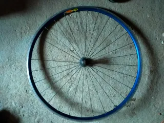 Llanta de bicicleta Mavic de color azul. - Llanta de aluminio. - Diseño deportivo. - FALTA UN RADIO.