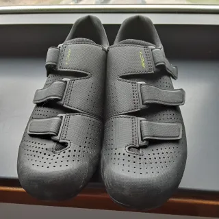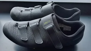 Botas de ciclismo Shimano RC1 en talla 44. Diseñadas para ofrecer comodidad y rendimiento en tus rutas. - Cierre con tres velcros. - Exterior perforado para ventilación. - Logo RC1 en los laterales.