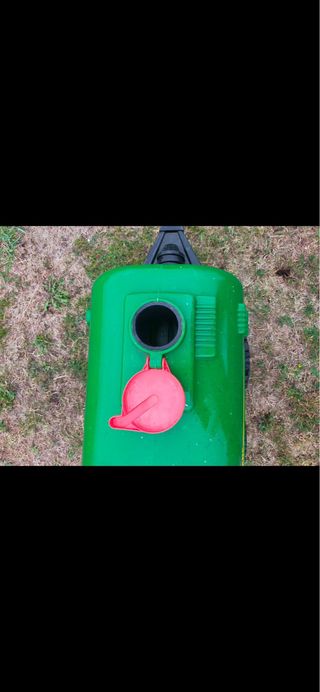 Remolque cisterna de juguete de la marca John Deere. - Color verde brillante. - Ruedas negras con detalles amarillos. - Diseño inspirado en maquinaria agrícola.