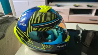 Casco Scorpion EXO r1 con 3 pantallas transparente ahumada y fotocromatica Lleva air para ajustar a la cara Tiene un pequeño rallado se ve en la ultima foto Talla m es como una s El intercomunicador no está incluido