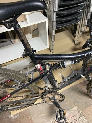 Bicicleta de montaña con doble suspensión, ideal para terrenos irregulares. - Cuadro robusto. - Amortiguador trasero. - Ruedas todoterreno.