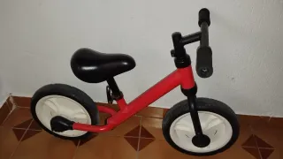 Bicicleta de aprendizaje para los más pequeños. Ideal para empezar a familiarizarse con el equilibrio y la conducción. - Pedales y ruedines desmontables con un click. Perfecto para iniciar la estabilidad y coordinación del niñ@ - Marco de color rojo. - Ruedas de goma. - Sillín negro ajustable.
