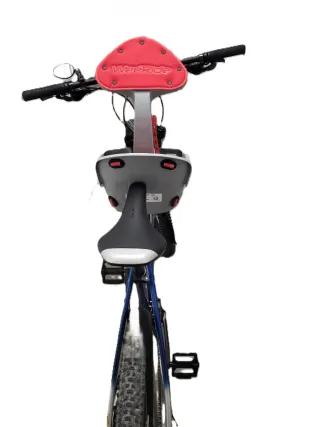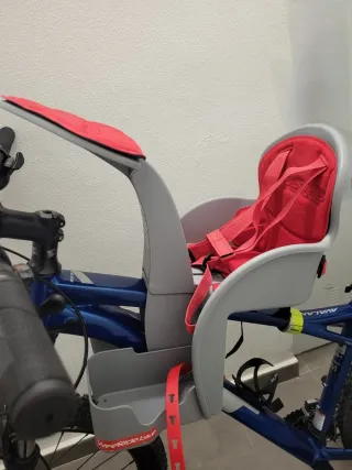 Silla infantil delantera para bicicletas de 26-28 pulgadas. - Marca: WeeRide - Color: Gris y rojo - Acolchado rojo en la parte superior. - Nueva: 150€