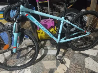 Bicicleta de montaña Rockrider 8.1 con algunas mejoras. - Cuadro de aluminio. - Horquilla delantera Rock shock v-spect. 85mm. - Ruedas de 26 pulgadas. - Frenos de disco hidráulicos - Rueda trasera maxxis