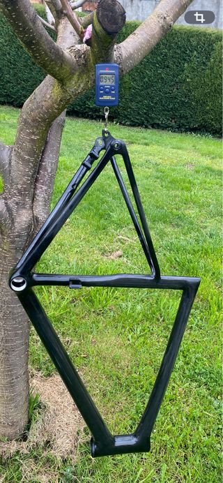 Cuadro de bicicleta Spycycle r088 talla 58 carbono visto brillante con un peso de 945 gr( inluído patilla udh y del desviador) misma geometría exacta que el specialized tarmac sl8 va con cierre trasero y patilla de cambio udh, sin horquilla ni cierre de sillín, tiene sólo dos salidas, adjunto foto con el paso de rueda trasera con cubierta de 28(30 mm reales)