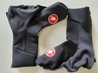 Cubre zapatillas de ciclismo Castelli en color negro. - Diseño térmico. - Logo de Castelli en rojo. - Talla M (40-42) - Menos de 10 salidas