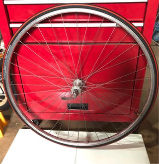 Hola,vendo esta llanta delantera de la marca Maillard para bicicleta clásica de carretera,incluye camara,neumático y cierre rapido,buen estado,700,bh,Orbea,gac,torrot,derbi,Weinmann,campagnolo,mavic,carretera,carreras,clásica,antigua,envíos por correos,impost,gls y seur.
