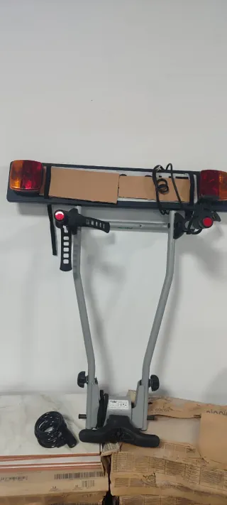 Portabicicletas con luces traseras y cableado. Soporte enganche a bola de remolque Solo utilizado dos veces - Luces de freno y posición. - Cable de conexión eléctrica.