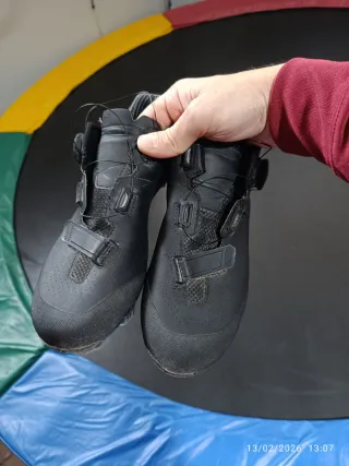 Zapatillas de ciclismo MTB Rockrider con sistema de cierre BOA. - Cierre BOA para un ajuste rápido y preciso. - Diseño deportivo en color negro. - Talla 42. Realmente son 43. Yo siempre uso 43 pero estás me están muy ajustadas. Prefiero anunciarlas como talla 42. Buen estado.