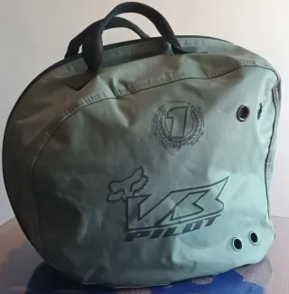 Funda para casco de moto o cross marca FOX. TALLA S - Modelo V3 Pilot. - Color negro - Cierre de cremallera competición - casco de carbono Edición RICHIE CARMACHIEL TALLA S EQUIVALENTE DE CARRETERA TALLA M